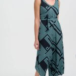 Modo largo midi. tejido ecovero. tirantes anchos, escote de pico, corte en la cintura con cinturón del mismo tejido. bolsillos. color negro y verde grisáceo. La modelo lleva talla S
