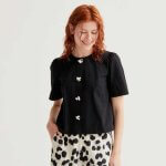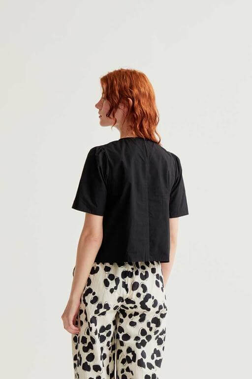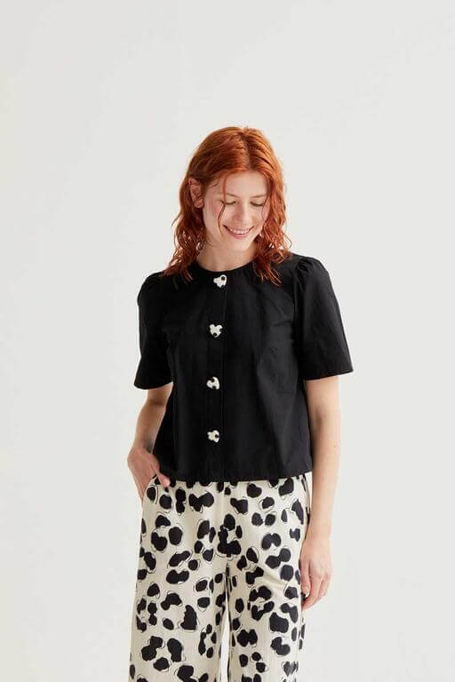 Top de tejido 100% algodón de color negro. Cuello redondo y manga corta ligeramente abullonada. Cierre frontal con botones ocultos con detalle de corazón. La modelo mide 175 cm y lleva la talla S. Tallas XS, S Valoraciones No hay valoraciones aún. Sé el primero en valorar “Top negro botones corazón”Cancelar respuestaTu dirección de correo electrónico no será publicada. Los campos obligatorios están marcados con *Tu puntuación * Puntuar… Perfecto Bueno Normal No está tan mal Muy pobre Nombre *Correo electrónico *Tu valoración *Enviar