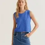 Top con tejido de punto bordado encadenado de color azul. Cuello redondo y sin mangas. Detalles en relieves bordados. La modelo mide 177 cm y lleva la talla S. Tallas S, M, L Valoraciones No hay valoraciones aún. Sé el primero en valorar “Top `punto verano blue”Cancelar respuestaTu dirección de correo electrónico no será publicada. Los campos obligatorios están marcados con *Tu puntuación * Puntuar… Perfecto Bueno Normal No está tan mal Muy pobre Nombre *Correo electrónico *Tu valoración *Enviar