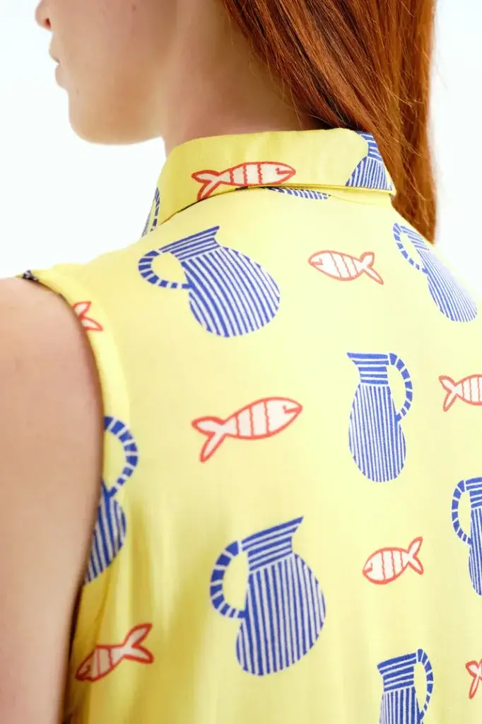 Vestido con tejido estampado brava. Cuello con solapa y sin mangas. Cierre frontal con botones de color amarillo. Detalle de volantes. La modelo mide 175 cm y lleva la talla S. Tallas XS, S, M, L, XL Valoraciones No hay valoraciones aún. Sé el primero en valorar “Vestido camisero brava”Cancelar respuestaTu dirección de correo electrónico no será publicada. Los campos obligatorios están marcados con *Tu puntuación * Puntuar… Perfecto Bueno Normal No está tan mal Muy pobre Nombre *Correo electrónico *Tu valoración *Enviar