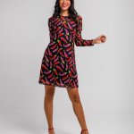 Vestido mini de tul con manga larga negro con chilis rosas y rojos: Vestido mini de tejido elástico de corte camiseta, manga larga, corte recto. – 95% Poliéster y 5% Elastán. – Lavar a máquina en agua fría. No usar blanqueador. No usar secadora. Secar colgado a la sombra. Planchado a temperatura baja, por debajo de 100 ºC. Planchar del revés. No dejar la plancha parada sobre la prenda. Lavar con colores similares. – TALLA XS: Medida de pecho 43 cm, medida de la cintura 45 cm, medida del bajo 47 cm y largo del cuerpo 87.5 cm.TALLA S: Medida de pecho 45 cm, medida de la cintura 47 cm, medida del bajo 49 cm y largo del cuerpo 89 cm.TALLA M: Medida de pecho 47 cm, medida de la cintura 49 cm, medida del bajo 51 cm y largo del cuerpo 90.5 cm.TALLA L: Medida de pecho 49 cm, medida de la cintura 51 cm, medida del bajo 53 cm y largo del cuerpo 92 cm.TALLA XL: Medida de pecho 51 cm, medida de la cintura 53 cm, medida del bajo 55 cm y largo del cuerpo 93.5 cm. – Las medidas de las prendas pueden presentar pequeñas variaciones debido al proceso de producción de hasta 2 cm.